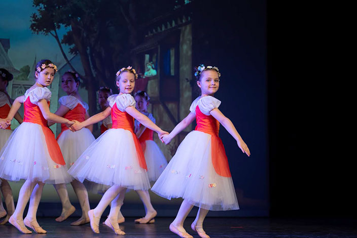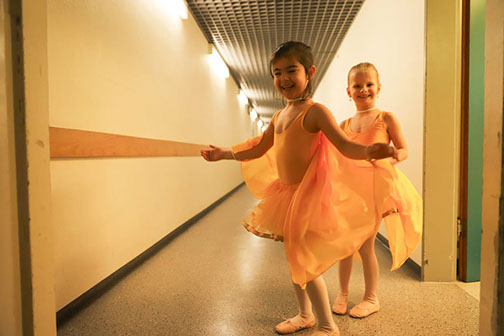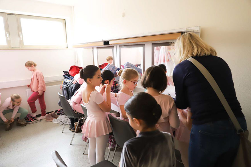 Die Tanzschule versteht sich dabei nicht nur als Ort des klassischen Ballettunterrichts, sondern als Raum, in dem Kinder und Jugendliche sich künstlerisch entfalten können. Es geht nicht allein um Technik, sondern darum, Selbstvertrauen, Ausdruck und Kreativität zu entwickeln. Aus diesem Grund gehört die regelmäßige Arbeit an einer Bühnenaufführung fest zur Ausbildung dazu – damit die Schülerinnen und Schüler wertvolle Bühnenerfahrung sammeln und das Zusammenspiel von Tanz und Theater erleben können