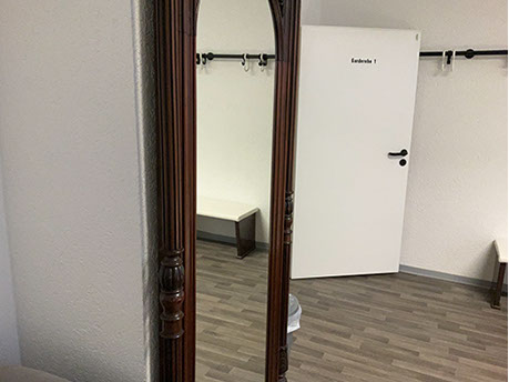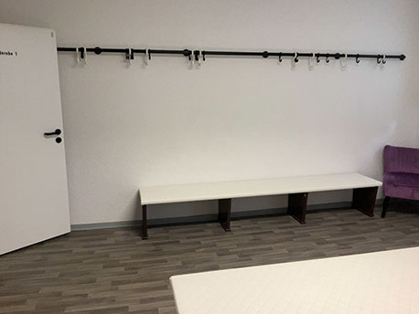 Eine großzügige Garderobe für die Kinder, Mädels und Frauen dient als Möglichkeit, sich auf die Klasse vorzubereiten. Für Jungen und Männer haben wir einen separaten Umkleidebereich.